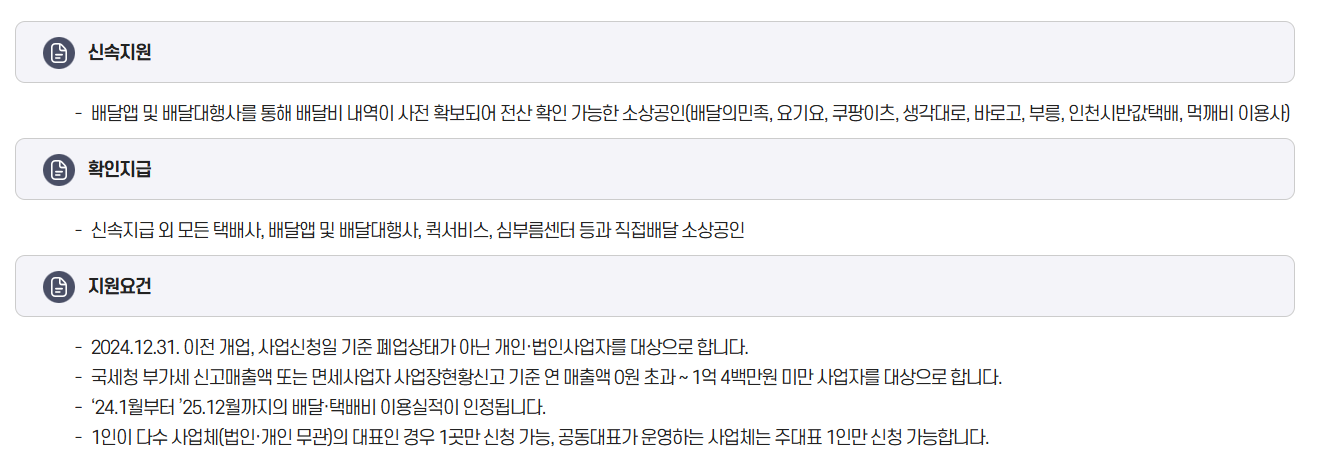 - 2024년 1월부터 2025년 12월까지 배달·택배비 이용 실적이 있는 사업자