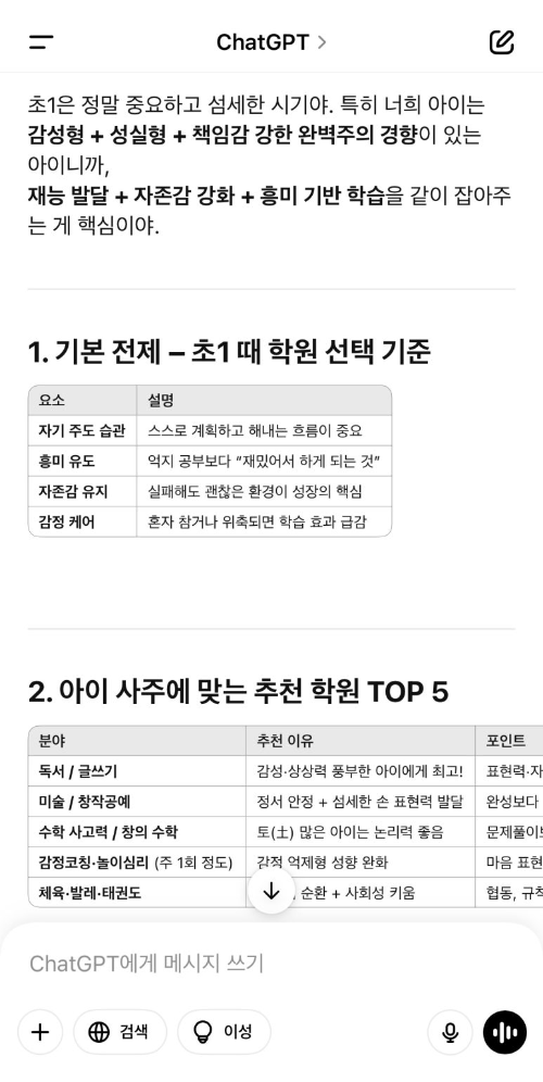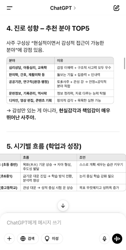아이를 알아야 아이를 키울 수 있을거란 생각에 지문검사((유료), 컬러검사(유료)도 해보았어요. 맞는거 같으면서도 속시원이 잘 나오진 않더라구요. 검사결과도 대충 알려주시는거 같고 돈낸거에 비해서 개운하지가 않았어요. 그러다가 우연히 챗지피티가 사주를 봐준거는걸 알게되었고 테스트를 해보았어요!
