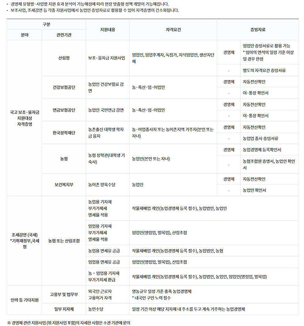 - 세제 혜택: 농업인 건강보험료 및 국민연금 보험료 감면 혜택을 받을 수 있습니다.