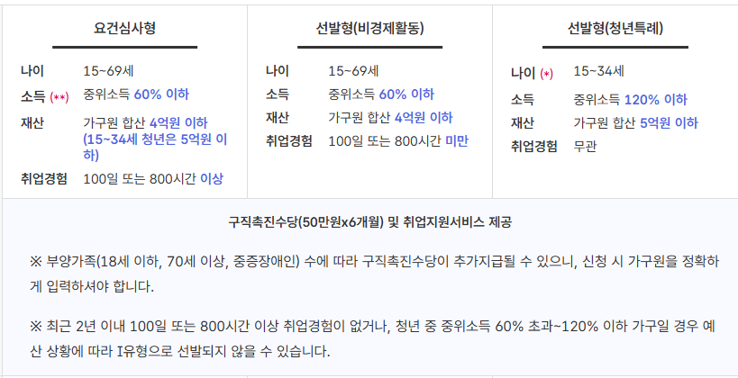 - 실질적인 경제적 지원 (훈련수당, 취업성공수당 등)