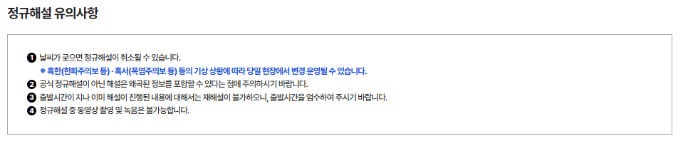 - 예약: 홈페이지 사전 예약 시 '정규해설 선택' 가능