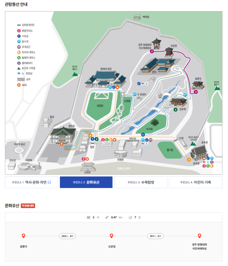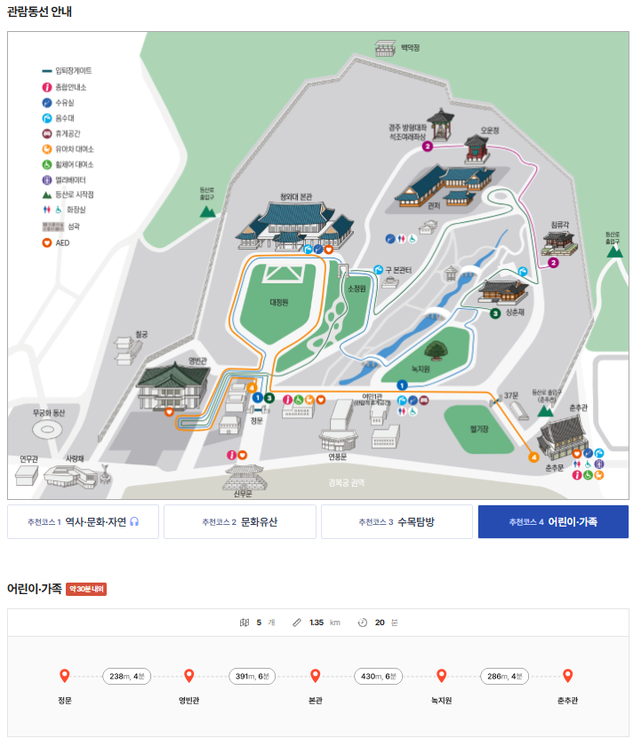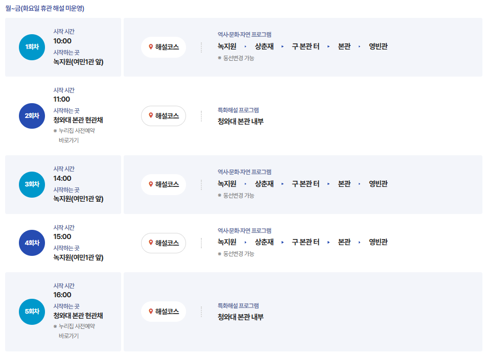 2. 청와대 정규해설 시간, 해설 프로그램, 관람동선