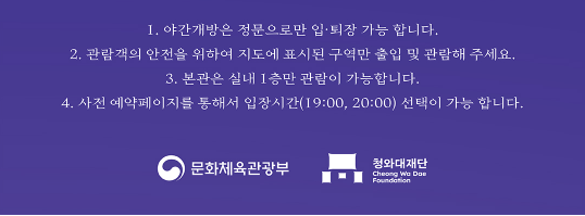 - 전 구역 자율관람으로, 20:00 이후 입장 제한됨