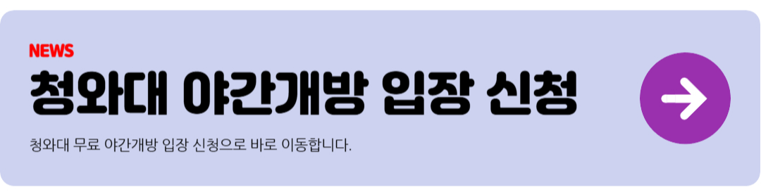 - 예약 방법: 청와대 누리집(opencheongwadae.kr)에서 온라인 예약 (선착순)