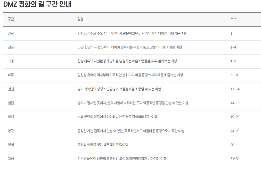 - 코스상세보기→ DMZ 평화의 길 코스안내