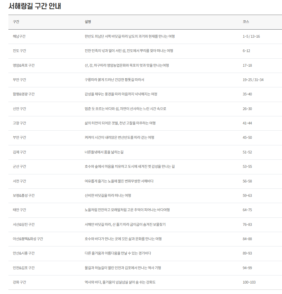 - 특징: 서해안의 갯벌과 낙조를 감상할 수 있는 코스로, 농어촌 마을의 정취를 느낄 수 있습니다.